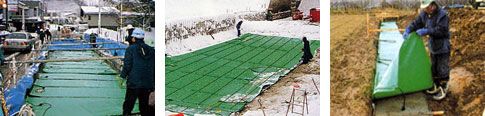 冬期のコンクリート打設において、コンクリートが初期凍害をうけないよう打設後、十分に保温養生をしなければなりません。コンクリートの温度を5℃以上に保温することによって強度が著しく遅延せず、ひび割れや残留変形を防ぐことができます。これまでは練炭やジェットヒーターで加熱・保温していましたが、一酸化炭素中毒や火災による事故が多発し、問題となっています。