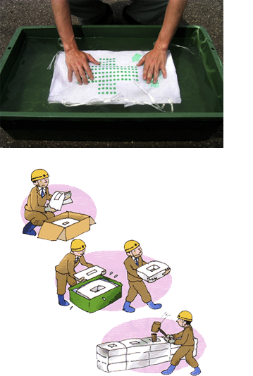 ・脱水処理材を使用する際は、化学反応により発熱しますので、ゴム手袋等で手を保護してください。